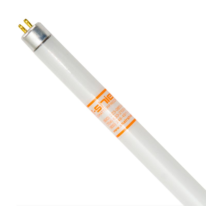 Shat-R-Shield’s safety coating on fluorescents reduces light output by less than 1%. It includes a patented UV blocking package that blocks 97% of UV emissions from 180 to 390 nanometers and is guaranteed not to yellow, crack or flake for the rated life of the lamp. Shat-R-Shield lamps are UL & NSF Certified, USDA approved and meet FDA and OSHA standards.