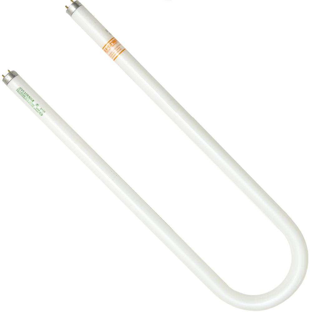 Shat-R-Shield safety-coated, shatterproof U-Shaped Fluorescent Lamps are the safest choice for 2′ x 2′ luminaries. These lamps provide the same light output as a linear lamp twice the length. Offered in two sizes T8 and T12. Shat-R-Shield U-Shaped Fluorescent Lamps are coated from end-to-end with the patented, plastic safety coating. The coating reduces light output by less than 1%. If used properly under warranty criteria, the coating is guaranteed not to yellow, crack or flake for the rated-life of the lamp. If a Shat-R-Shield fluorescent lamp is accidentally broken, virtually all glass, phosphors and mercury are safely contained within the clear and tough, skin-tight plastic coating.